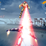 Exista si un Night Club Armor, armuri cu tunuri uriase si mitraliere si clasicul costum rosu metalizat, cu cateva variatiuni. Aceste armuri pot fi upgradate la 3 capitole, folosind moneda de schimb a jocului, reprezentata de niste mici sfere rosii. Pe acestea le adunati in vreme ce zburati sau le primiti pentru diferite achievementuri completate. Veti face si level up si aveti un soi de “garaj” pentru robotii pe care ii imbracati.