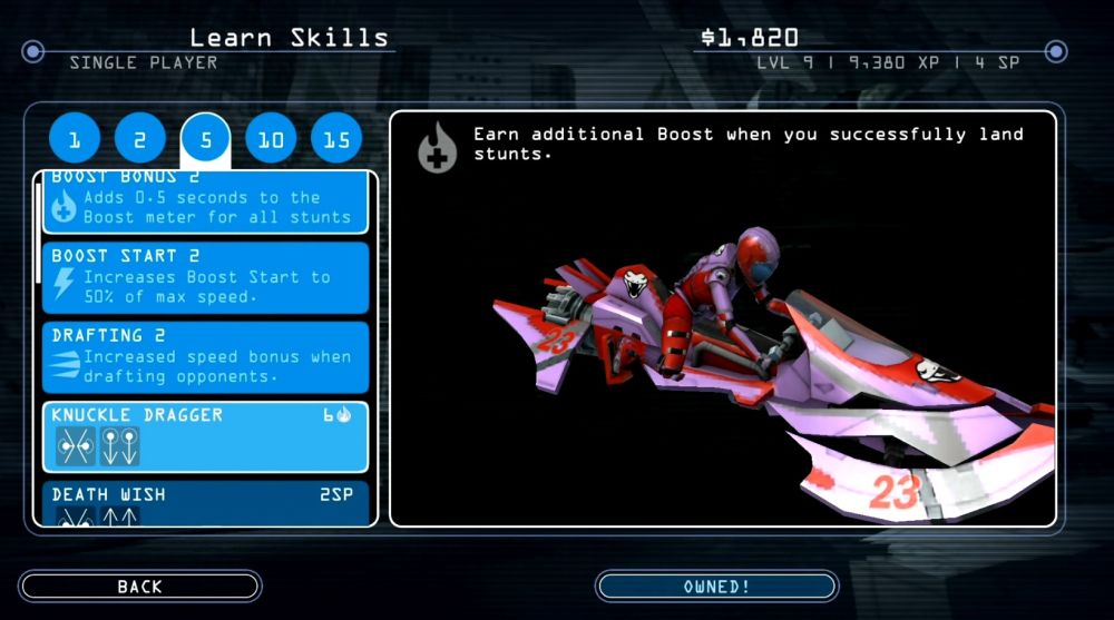 E de ajuns sa ne uitam la o batalie cu submarine si nave spatiale din fundalul cursei noastre, sau la marea agitata pe care rulam intr-un nivel infernal, in care singura directie e mereu jos, in adancuri. In continuare intrecerea cu rivali, 7 la numar ramane cheia gameplaylui, dar avem si alte provocari. Clasicul time trial e la posturi si avem si Elimination, dar si o serie de curse in care trebuie sa facem cat mai multe trickuri pentru a strange puncte.