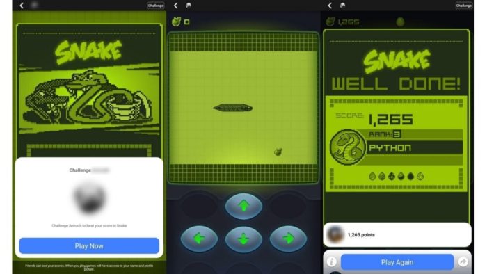 Trebuie sa intrati in aplicatia Facebook Messenger, sa gasiti un contact disponibil sa se joace si in zona de de deasupra tastaturii unde se afla GIF-urile veti gasi si logo-ul Games. Acolo se afla clasice precum Solitaire, Pac-Man, dar si noul Snake. Puteti selecta viteza de joc si sa controlati serpalaul folosind 4 butoane de directie virtuale.
