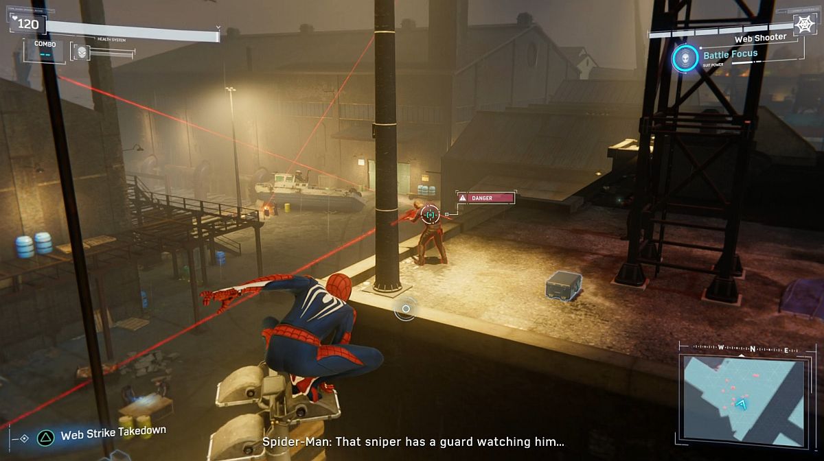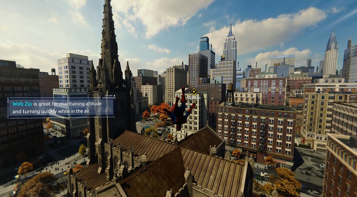 Eu am rămas traumatizat de căutat tigăi pentru babe în Witcher 3 sau găsit soţi beţivi în Assassin’s Creed Origins. Aici Peter poate face poze la puncte de reper pentru landmark points, poate opri poluarea oraşului, opri jafuri în timp real sau maşini de infractori. Datul cu pânză, celebrul webslinging este scheletul acestei experienţe. A fost regândit şi a primit un boost cumva.