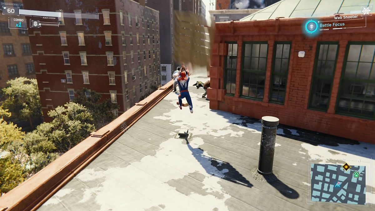 Spidey e flexibil şi e mereu în mişcare, făcând acrobaţii gârla pe parcursul luptelor. Preferata mea este alunecarea printre picioarele inamicului şi ieşitul în spatele lui. Da, facem ceva button mashing, dar aici odată la 2 3 lovituri mai facem şi doge, pentru că eroul nostru nu are armura ca Batsy sau Iron Man şi e foarte vulnerabil la gloanţe. Cu pânză de păianjen putem să îi încetinim sau blocăm pe inamici, să ne ducem mai aproape de ei sau să îi atârnăm de tavan. Spre final de joc o sa aveti asa multe combo-uri ca o sa va simtiti ca in Tekken.