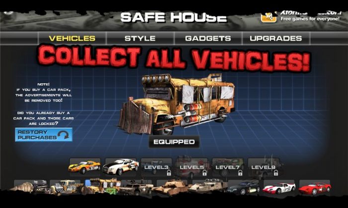 Titlul este gratuit in Play Store şi se bazează pe ciocniri şi loviri ale adversarilor la viteză maximă. Nu are chiar cea mai bună fizică sau grafică din lume şi îmi aduce un uşor vibe de Crazy Taxi. Maşinile au tuninguri nebuneşti, cu tot felul de motoare şi mitraliere montate. Cumva pare să fie un verişor de Carmageddon, la pachet cu nişte rampe în stil Asphalt 8 de pe care să zburăm.