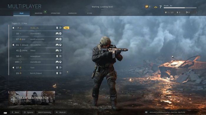 Restul de Multiplayer este destul de familiar şi foarte bogat aş putea spune. Avem 7 Moduri în meniul principal: Realism TDM, Ground War, Gunfight, Shoot House 24/7, Hardpoint, Free for All şi Trials. Mai avem şi opţiunea de Custom Game. Aici îţi poţi alege următoarele: Harta, Modul de joc (Team Death match de exemplu sau Hardpoint) unde cred că am numărat în jur de 11 reguli cum ar fi timp de joc sau limita de scor şi câţi boţi să umple harta.