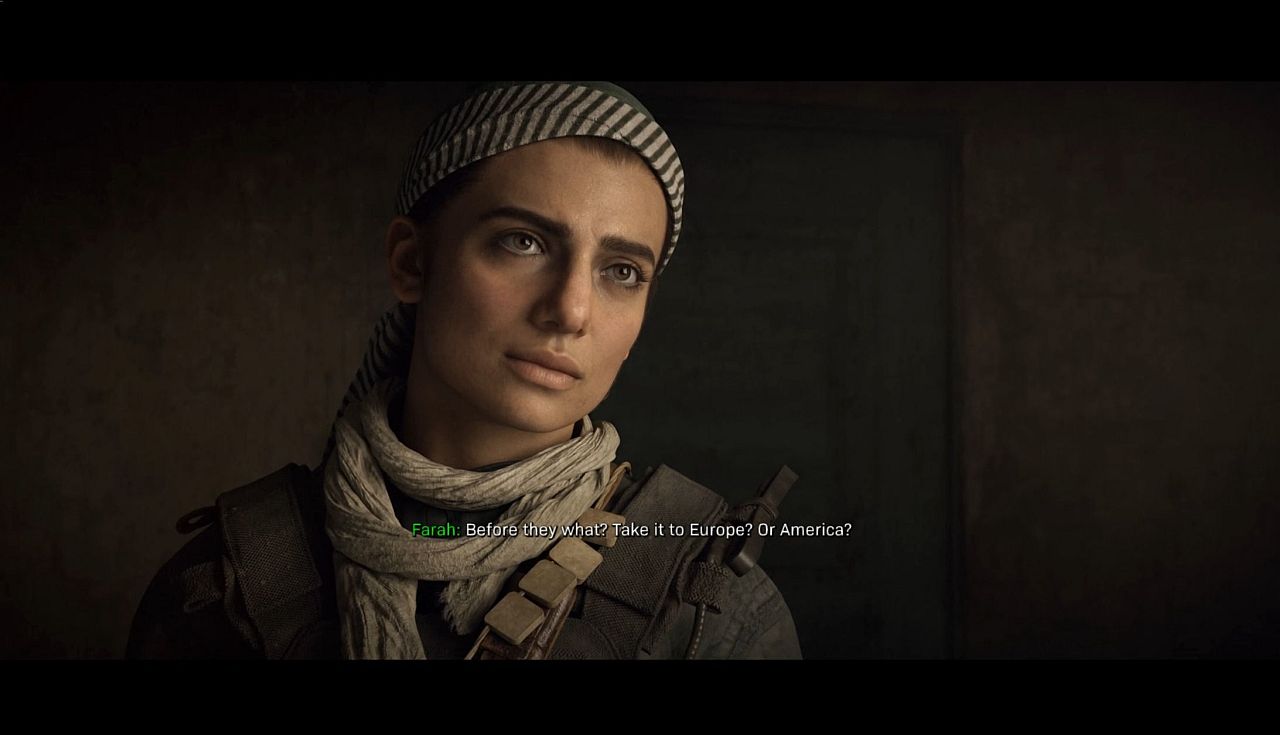 Începem cu povestea, o poveste ancorată în realitatea zilelor noastre. Ca de obicei, băieţii răi sunt ruşii dar de fapt este vorba de terorism modern. Joci cu: Kyle “Gaz” Garrick, un soldat britanic şi te întâlneşti şi cu legendarul Captain Price. El te băga în toată tărăşenia asta. Mai este şi personajul Alex, ofiţer CIA şi toată încrengătura asta ce ţipă a scenariu de “Homeland” se petrece într-un stat fictiv din Orientul Mijlociu numit Urzikstan. Nu lipseşte arhetipul token de femeie puternică şi Politically Correct, Farah.