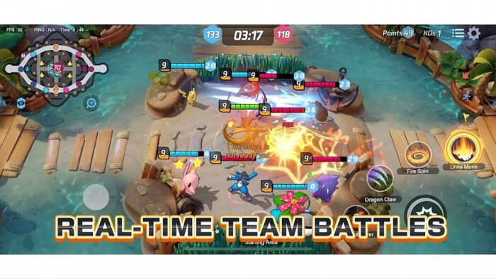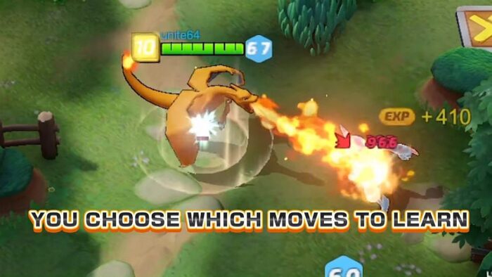 Gamerii vor alege un Pokemon la început de luptă şi apoi îl vor ajuta să evolueze, primind noi abilităţi. Avem o sumedenie de personaje de folosit, dar dispar elementalele şi afinităţile, pentru a face totul mai simplu. Practic Pokemonii de apă nu mai au avantaj în faţa celor de foc de exemplu. O altă diferenţă faţă de un MOBA clasic e că nu ucidem inamici, ci îi capturăm. În Unite trebuie să revenim la bază pentru a ne recupera HP.