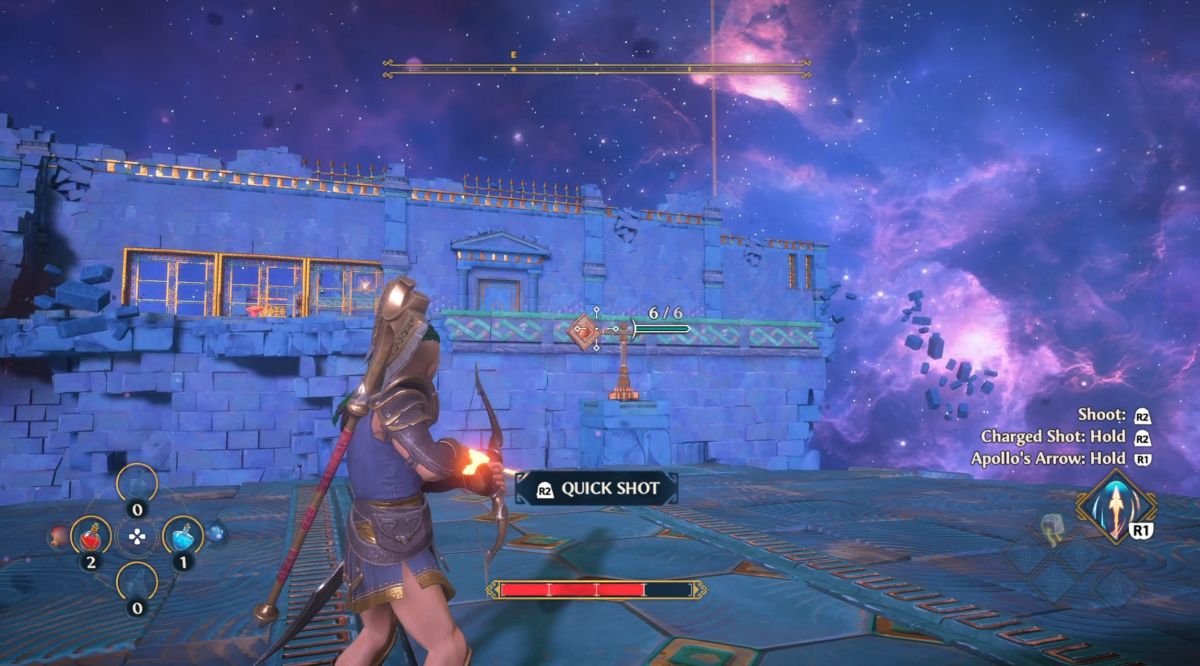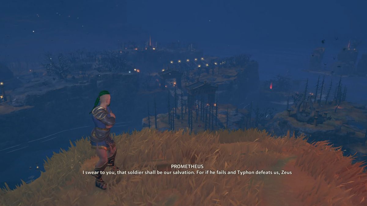 Pe parcursul poveştii ne mai întâlnim şi cu ştrengarul Hermes, Afrodita, Ares şi Athena, dar şi cu tulburatul Hefaistos. Poţi să îl personalizezi pe Fenyx la început de joc, să îi schimbi culoarea părului şi pielii, să îi pui simboluri pe faţă şi să îl faci fată dacă vrei. Momentul care mi-a amintit de Assassin’s Crede este cel în care te tot urci pe statuile uriaşe ale zeilor pentru a vedea puncte de interes pe hartă.