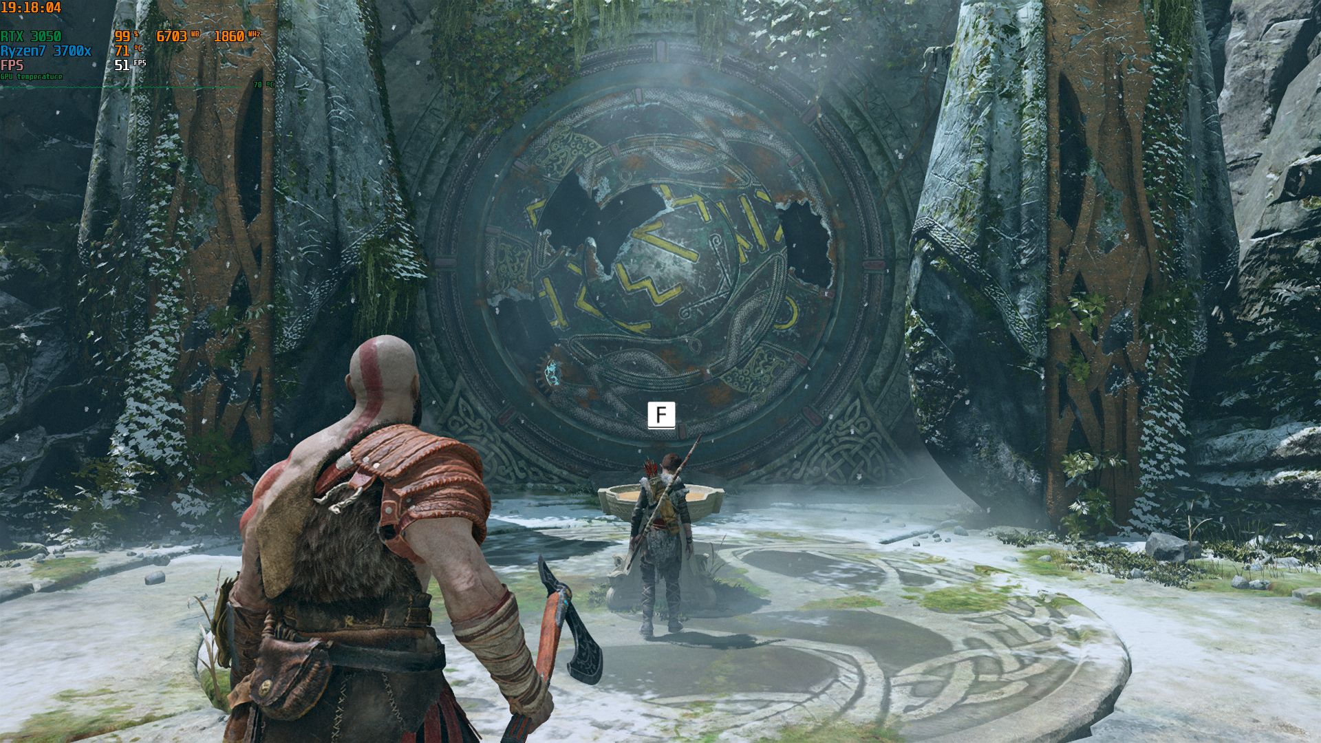 Am jucat şi God of War pe PC şi am ajuns la un ceva mai intens 77 de grade Celsius în modul Ultra Performance, dar FPS-urile au stat pe la 66, satisfacator aş zice. Fără DLSS, stăm pe la 51 FPS şi uneori scădem şi sub când se aglomerează ecranul.