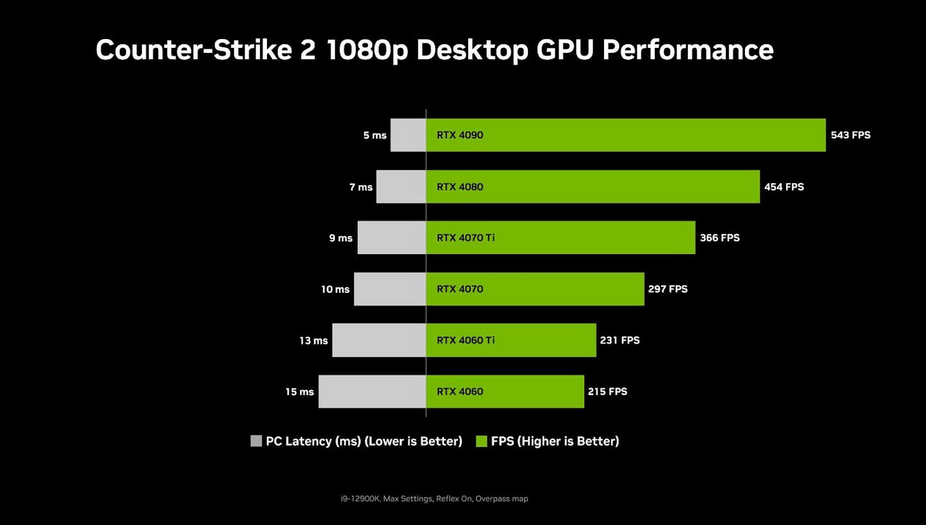 În jocuri de tip shooter competitiv precum Counter-Strike 2, maim ult FPS și o latență mai scăzută îți permite să țintești mai repede, să reacționezi mai repede, și să ai un aim mai bun. Seria de plăci video GeForce RTX 40 livrează experiența supremă în Counter-Strike 2 – cea mai mică latență cu NVIDIA Reflex (sub 15ms latență de PC) și cel mai mare FPS. Gamerii cu plăci video compatibile pot porni NVIDIA Reflex în Counter-Strike 2 pentru a reduce latența de sistem cu până la 35%.