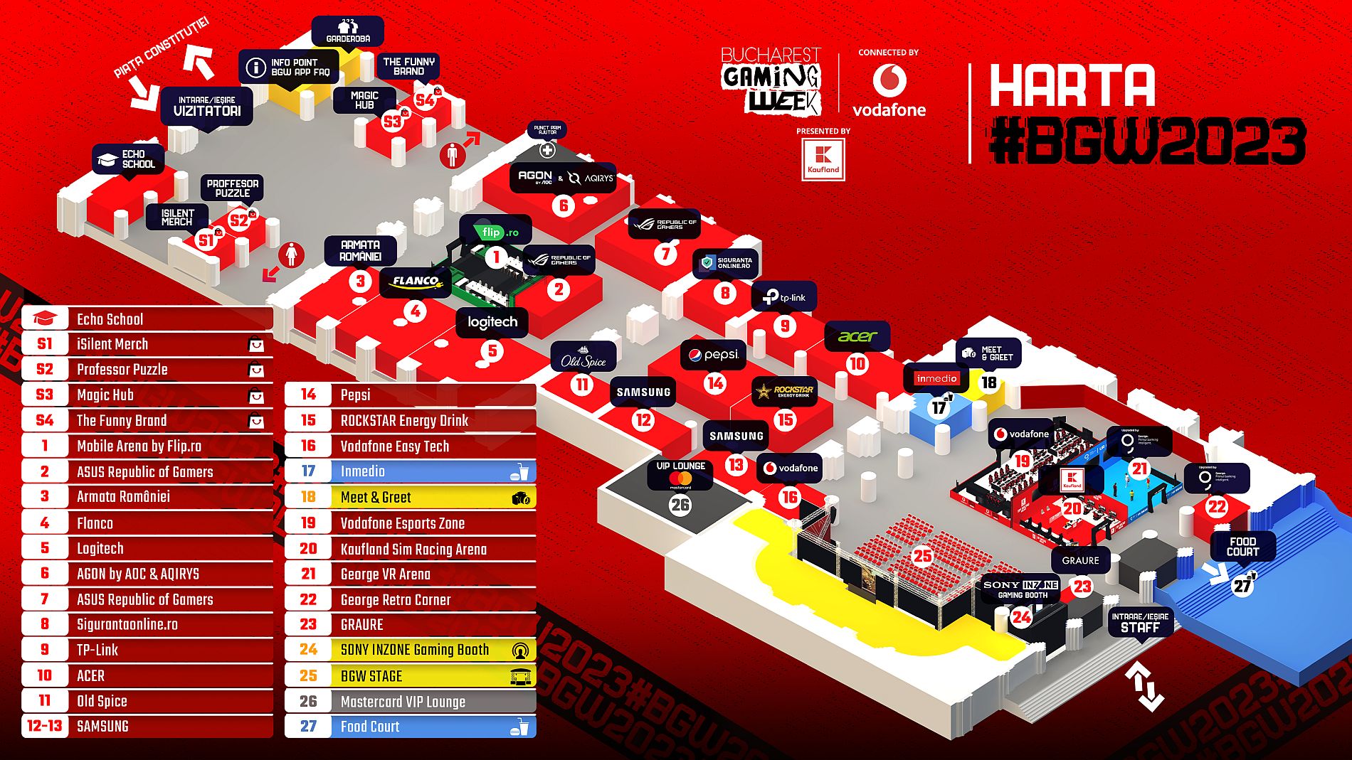 Jocurile proaspăt lansate anul acesta pe care gamerii le vor putea juca la eveniment se numără Counter-Strike 2, Mortal Kombat 1, Baldur’s Gate III, Assassin’s Creed Mirage și multe altele. Nu vor lipsi nici cele mai urmărite jocuri ale momentului precum Minecraft, Stumble Guys, League of Legends, Fortnite sau Valorant.