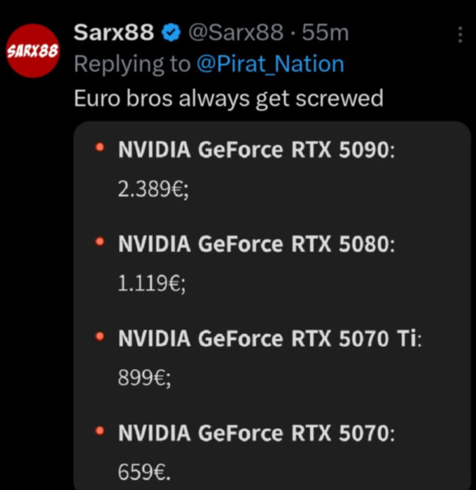 - NVIDIA GeForce RTX 5090: 2389 euro