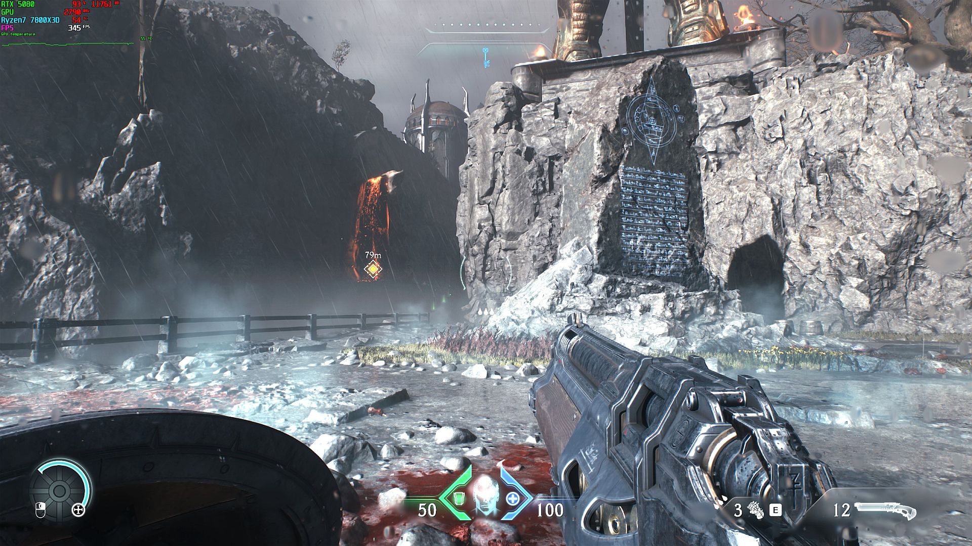 Concluzia testelor e simplă, dar spectaculoasă: DOOM: The Dark Ages devine o experiență aproape suprarealistă pe un RTX 5080. Cu DLSS 4 și Multi-Frame Generation x4, jocul atinge un vârf amețitor de 345 FPS pe setări Ultra Nightmare, oferind un avantaj uriaș în fața demonilor medievali. Fie că ești față în față cu un Baron cu armură de oțel gotic, ești urmărit de un Hellknight călare pe o bestie demonică, sau controlezi mech-ul Atlan într-o luptă aeriană contra dragonului mecanic, fluiditatea contează. Cu reflexe aproape instant și zero sacadări, fiecare lovitură de ciocan, fiecare blocaj cu scutul și fiecare evadare la limită devin mai precise și mai satisfăcătoare.