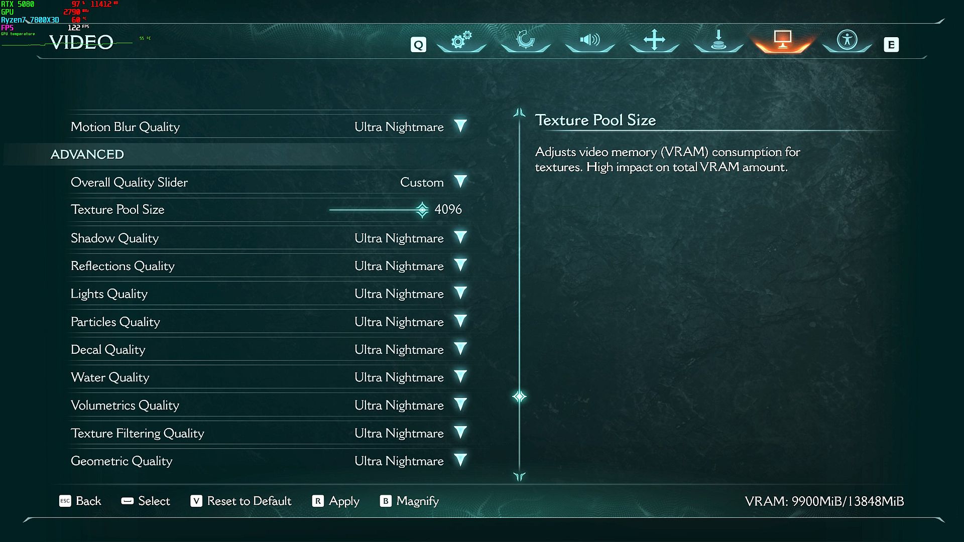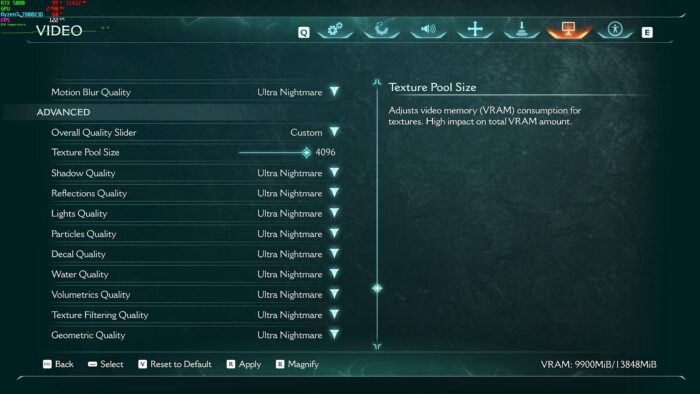 Am maxat setările jocului pe Ultra nightmare pe o rezoluţie 2K şi am început testarea tehnologiilor NVIDIA.