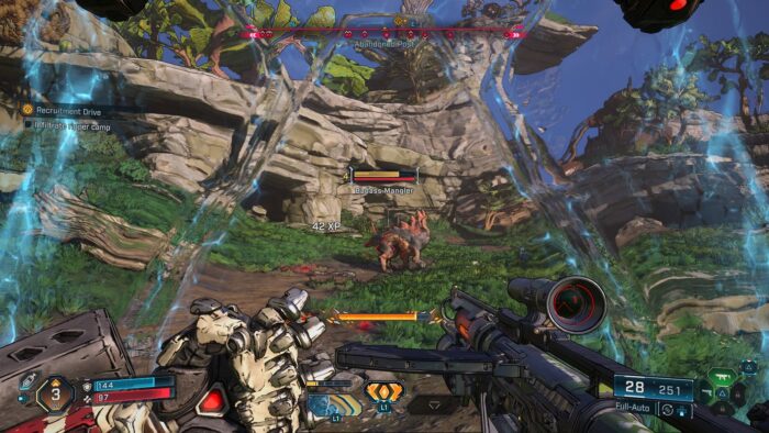 Armele sunt… ciudate şi cumva haotice. M-am trezit că pot da zoom de sniper cu un pistol, că o mitralieră trage rachete şi o armă care arată ca o jucărie trage cu bile energetice. Ca de obicei sunt importante şi elementalele, ce pot îngheţa, arde inamicii sau să le dea bleed.