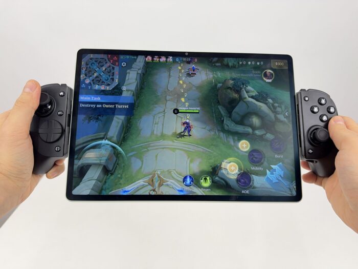 Compatibilitatea este un punct cheie – Kishi V3 Pro XL e gândit exclusiv pentru tablete între 10 și 13 inch, nu pentru telefoane. Designul telescopic și bracket-urile interschimbabile fac posibilă montarea chiar și pe modele groase, dar și o stabilitate excelentă odată fixat. Totuși, după o oră de joc, greutatea combinată se simte. Nu e un setup pentru tren sau avion, ci mai degrabă pentru canapea, birou sau stativ.