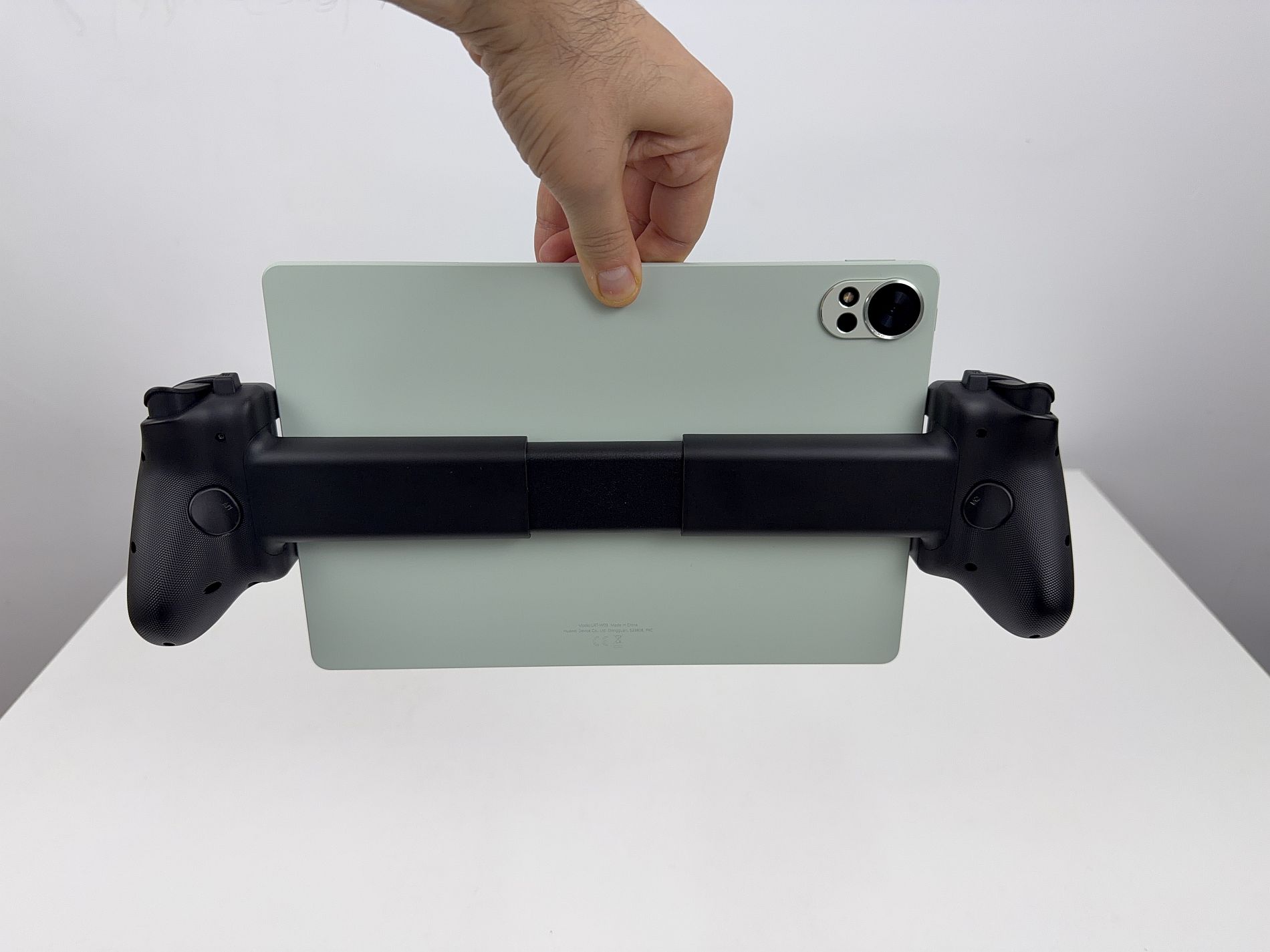 L-am testat pe Huawei MatePad 12X 2025 și am înțeles imediat de ce Razer a creat acest controller uriaș: e pentru cei care nu se mai mulțumesc cu ecrane mici și vor o experiență ca de consolă pe tabletă. Kishi V3 Pro XL e practic o mutație între portabil și desktop, gândit pentru ecrane de până la 13 inch, cu un design care inspiră soliditate și încredere, dar și cu o greutate care cere brațe antrenate. În momentul în care îl atașezi de o tabletă mare, tot ansamblul capătă o greutate comparabilă cu un Steam Deck OLED, dar impresia de „console feeling” e autentică.